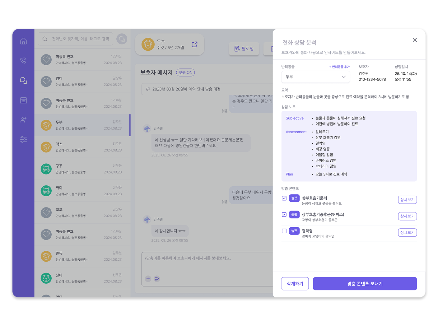 - AI 전화 분석: 수신된 통화 음성을 실시간으로 분석하여, 핵심 내용을 SOAP 노트 형식으로 자동 요약해 드립니다.